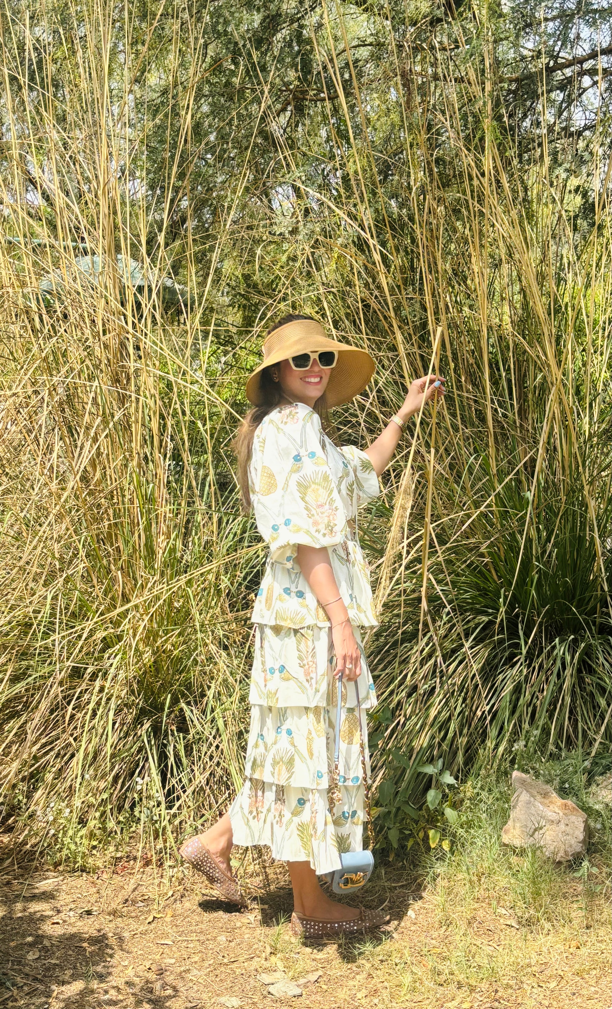Whether you’re strolling through a botanical garden or sipping rosé under the sun, this look brings effortless ease and vacation-ready vibes to your wardrobe.