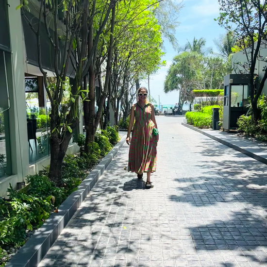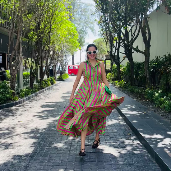 Unleash your wild side with our Pink Panthera—a midi-length marvel that exudes both elegance and edge. This dress is crafted to command attention: its playful, striped motif and subtle tiger-inspired details hint at untamed glamour, while the front buttons add a vintage charm. The flowy silhouette ensures effortless movement, making it a perfect companion for days when you want to keep it chic and comfortable, yet unmistakably bold. Whether you’re strutting through city streets or enjoying a lively soirée, Pink Panthera is designed to inspire confidence and celebrate your fearless femininity.